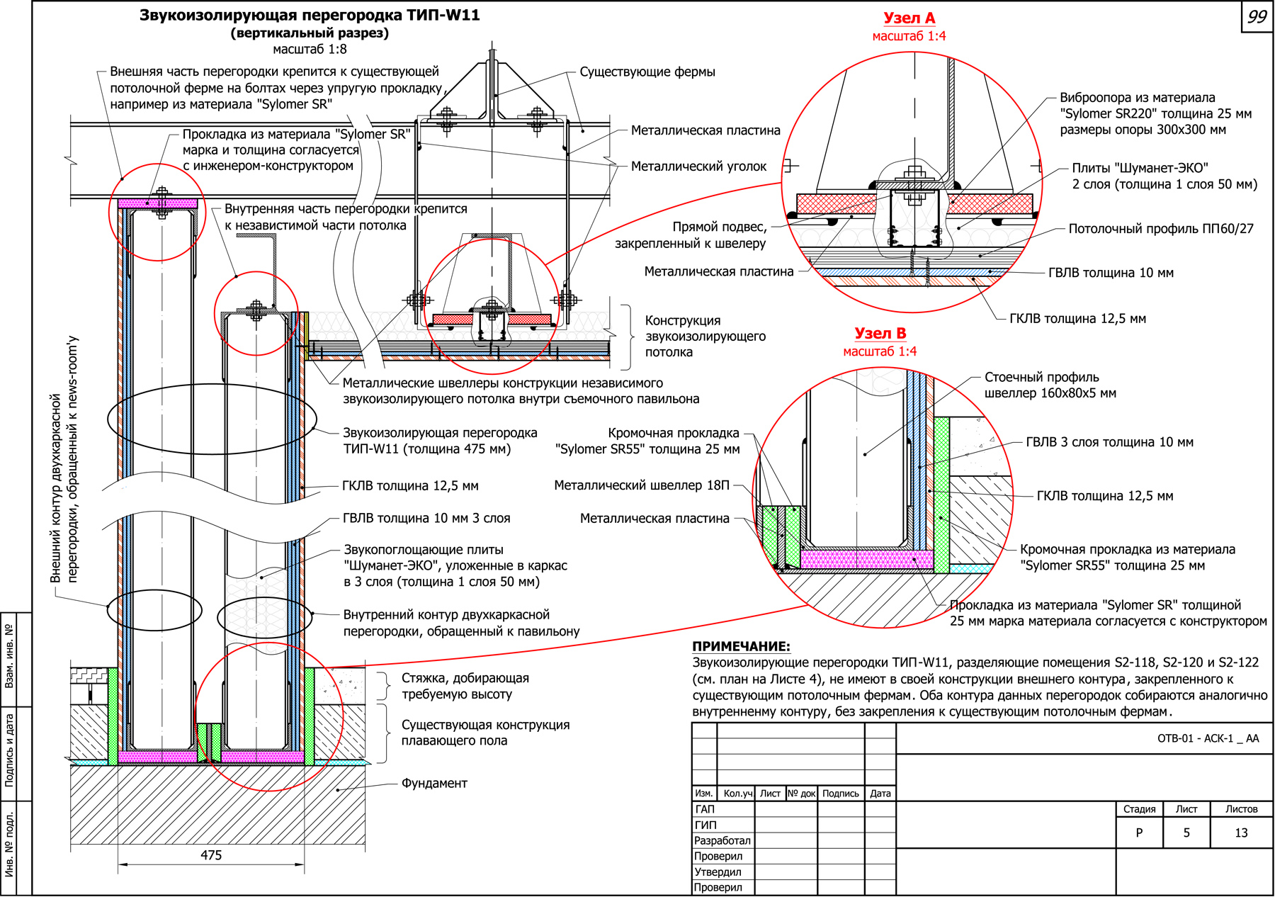 Предстоит монтаж двойных каркасных межкомнатных перегородок с воздушным зазором между каркасами и тяжелой обшивкой. Чтобы не перегружать плавующую стяжку, получил рекомендацию ставить их на плиту перекрытия с прокладками из силомера. Однако опасаюсь разворота направляющих профилей каркасов наружу из-за локального обжима прокладок под весом обшивки. Ведь при отношении высоты перегородки к толщине перегородки 42,86 ((3000 мм : (50 + 2 х 10) мм) при "проседании" прокладки на 0,5 мм стоечные профили развернет внутрь помещения на 21,4 мм. А если с противоположной стороны имеется такая же перегородка или обшивка межквартирной стены (на относе), то и этот каркас уйдет внутрь комнаты на столько же.